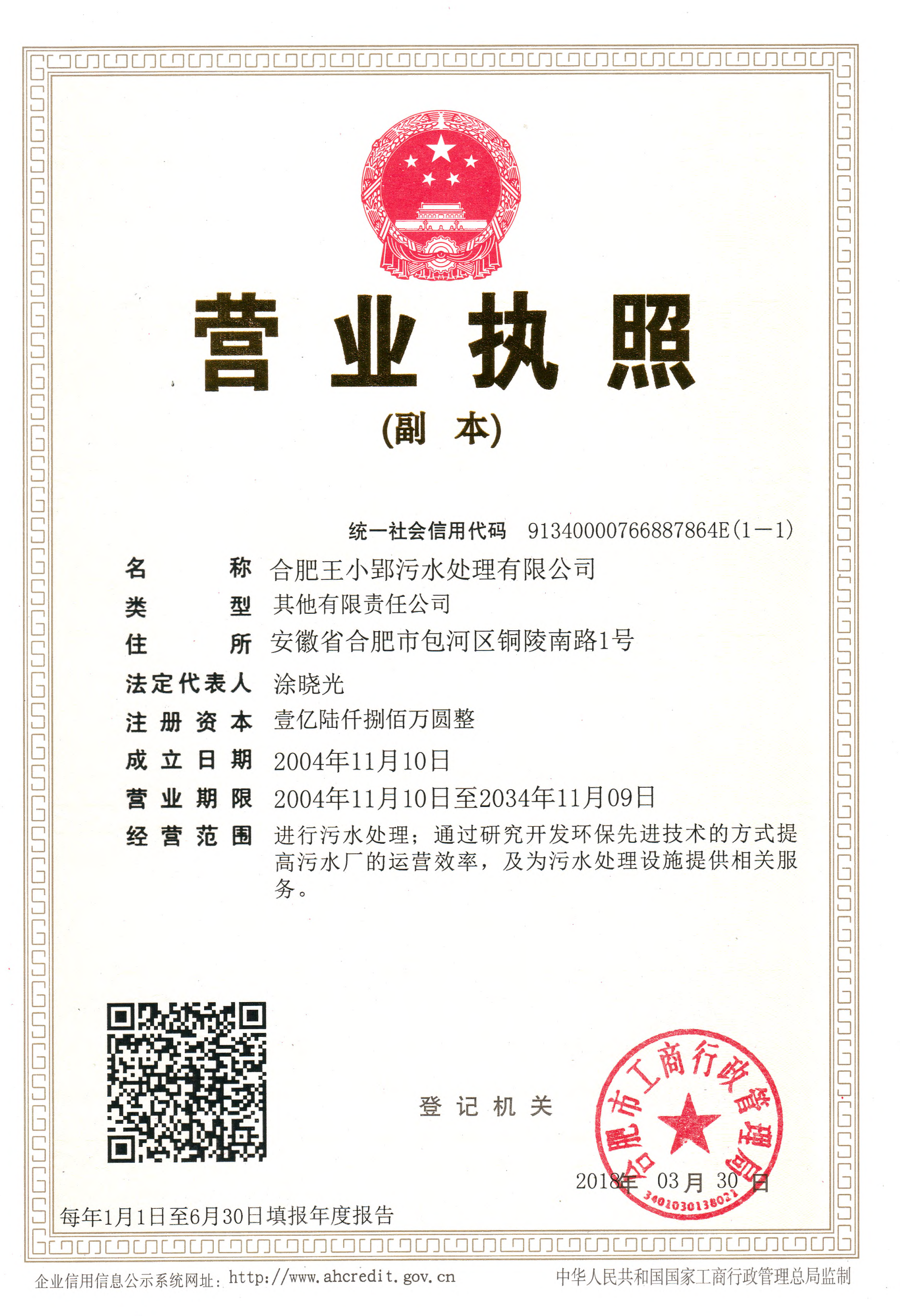 東華科技與德國柏林水務國際股份有限公司以公開招標方式取得合肥王小郢污水處理廠的特許經營權后,共同設立合肥王小郢污水處理有限公司,公司注冊資本金1.68億元,其中東華科技持股20%。經營范圍包括進行污水處理,通過研究開發環保先進技術的方式提高污水廠的運營效率,以及為污水處理設施提供相關服務。