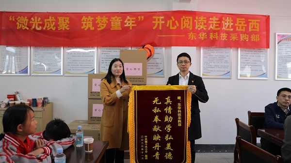 11月18日,東華科技采購部聯合安徽向日葵公益助學服務中心走進岳西,在岳西縣中關鎮斗水小學開展“微光成聚 筑夢童年”公益活動。公司采購部相關負責人,岳西縣教育局、縣融媒體中心相關負責人參加活動。