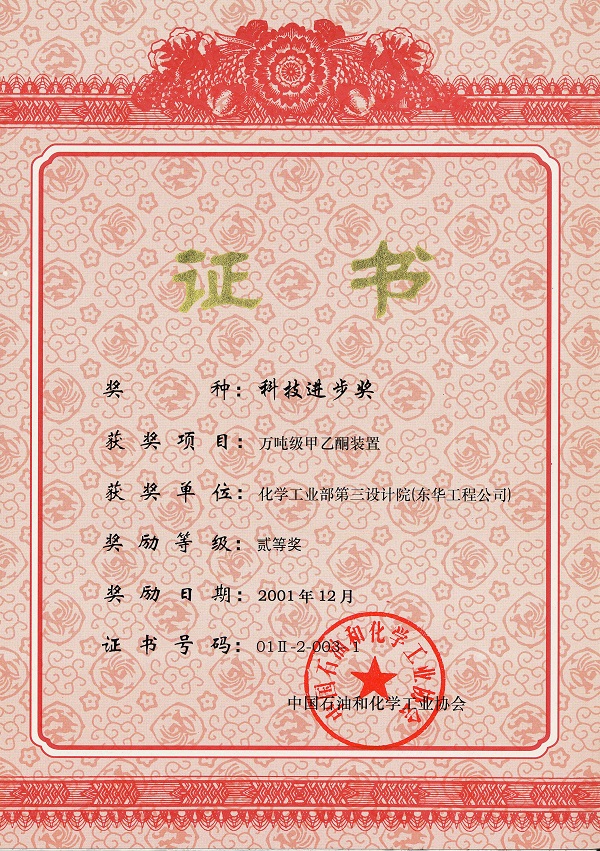 名稱:化工行業優秀工程咨詢成果獎一等獎