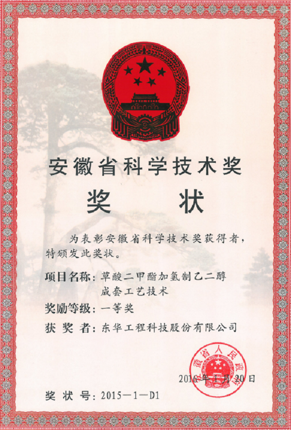 項目:草酸二甲酯加氫制乙二醇成套工藝技術