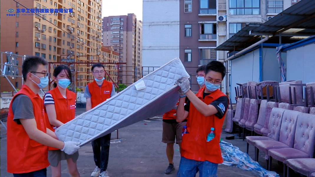 為弘揚志愿服務(wù)精神、傳遞愛與力量,近日,東華科技藍(lán)鴿志愿服務(wù)隊開展了助力“口罩天使中途宿舍”搬遷改造志愿活動。由于搬遷改造工作時間緊、任務(wù)重,志愿者們利用周末時間,頂著40度的高溫,為“口罩天使”們能早日遷往新居揮灑自己的汗水。新址曾先后作為火鍋店和主題酒店使用,現(xiàn)場遺留了大量的廢舊物品,志愿者們“手搬肩扛”,一趟趟往返于樓層之間。一雙雙扛起就走的手、一次次上下齊心的搬運、一個個扛起物品匆匆的身影,充分詮釋了東華科技“不怕苦、不怕累、不怕臟、認(rèn)真負(fù)責(zé)”的工作作風(fēng)。東華科技土建室技術(shù)副總監(jiān)姚大元作為志愿者接受了安徽電視臺的采訪:“能為社會提供力所能及的幫助,是我們應(yīng)該做的,是我們東華人更是團員青年應(yīng)該做的,傳遞愛與溫暖,腳步不停,初心不變。”